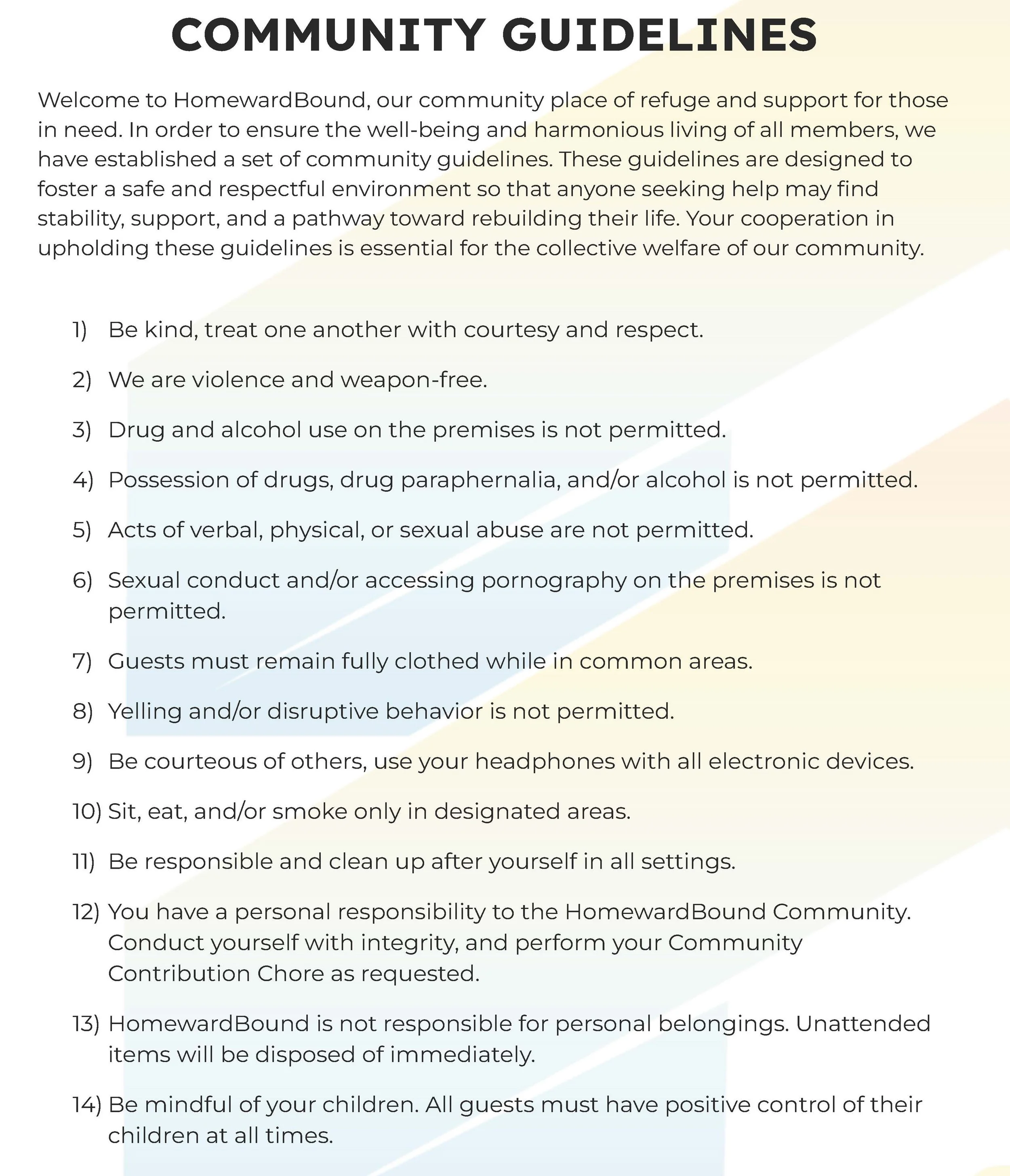 Above all else, our primary purpose is to provide low barrier emergency shelter and assistance to those in need 365 nights a year. As such, we do not require payment to access our services.